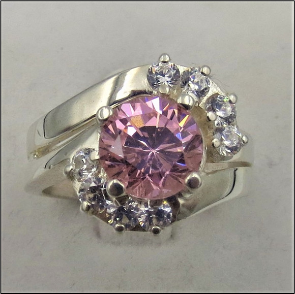 set with one round 7.5 mm. plus 8 x 2.5 mm. white cubic zirconia.